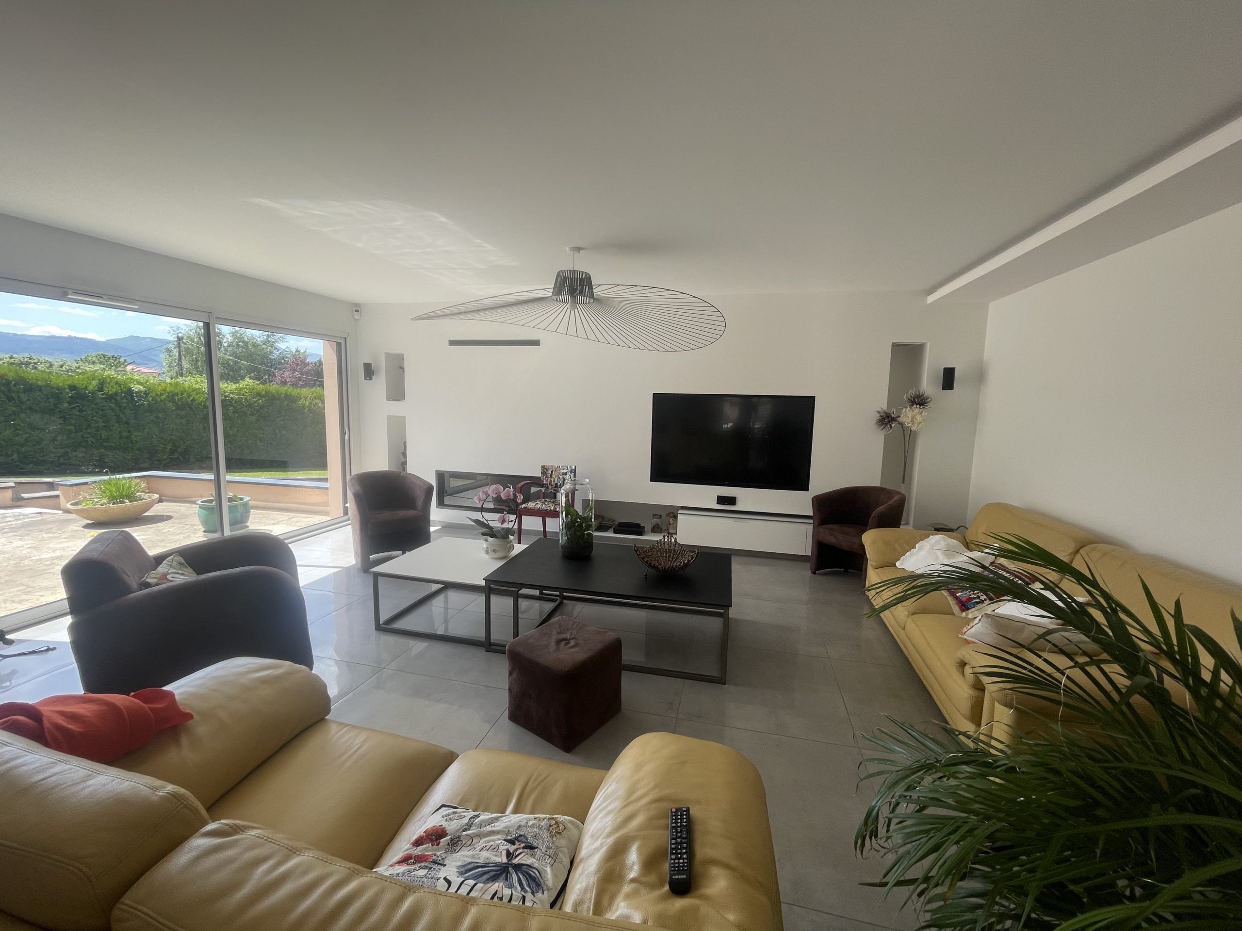 Maison récente d’environ 220m² avec jardin, terrasse, piscine, jacuzzi, très grand garage situé sur les hauteurs de Romagnat. Terrain de 2400m² entièrement clos.