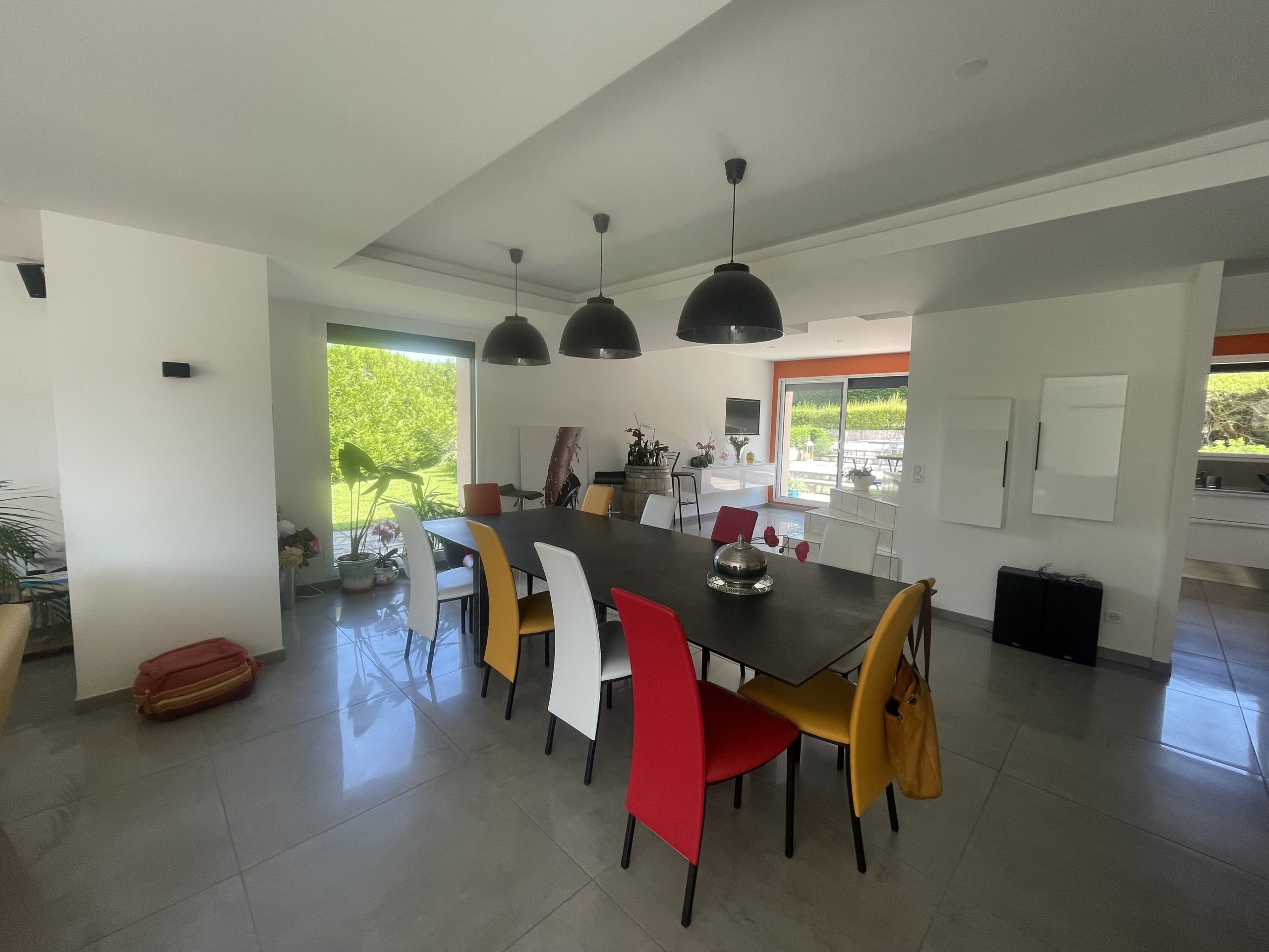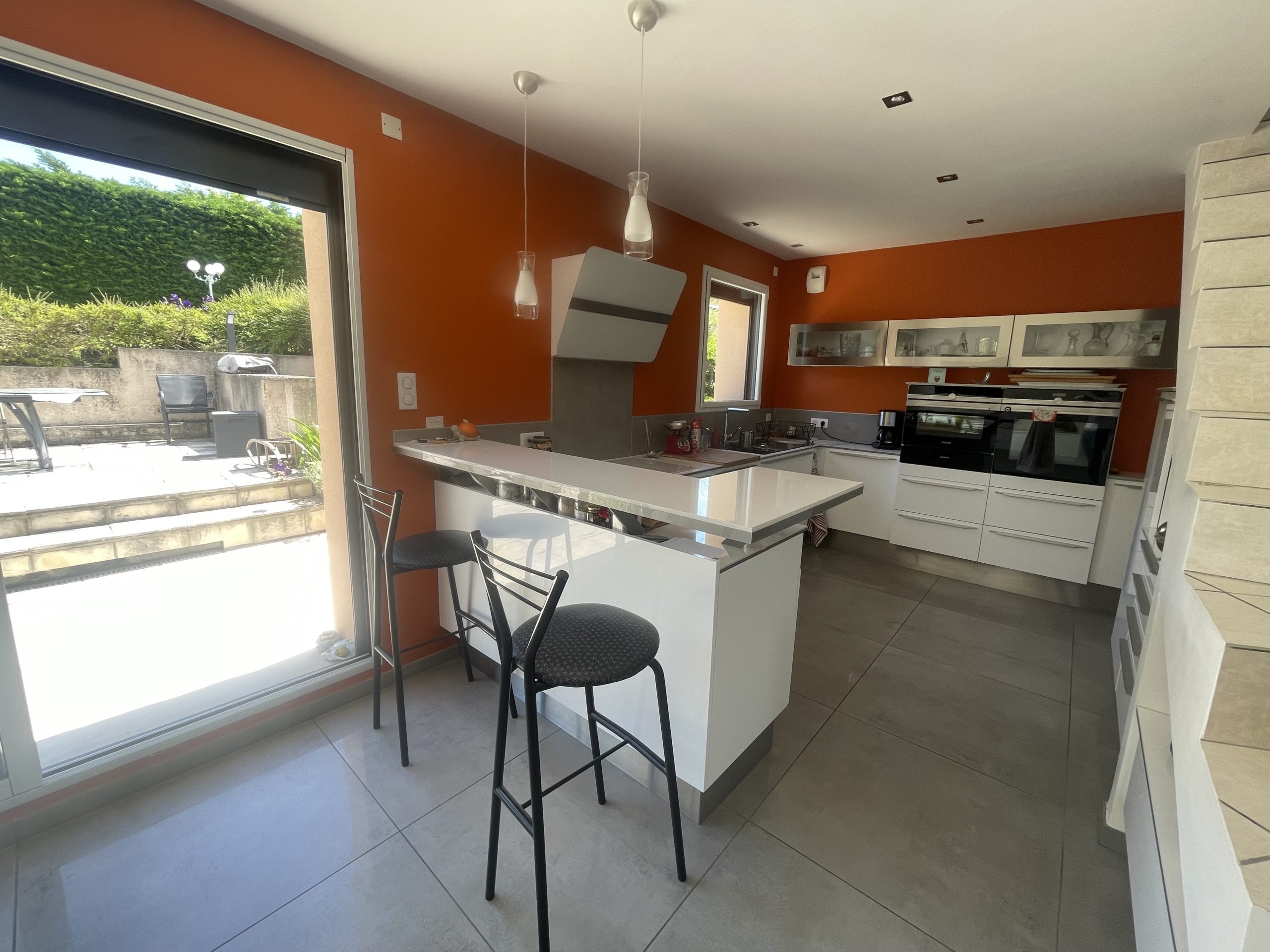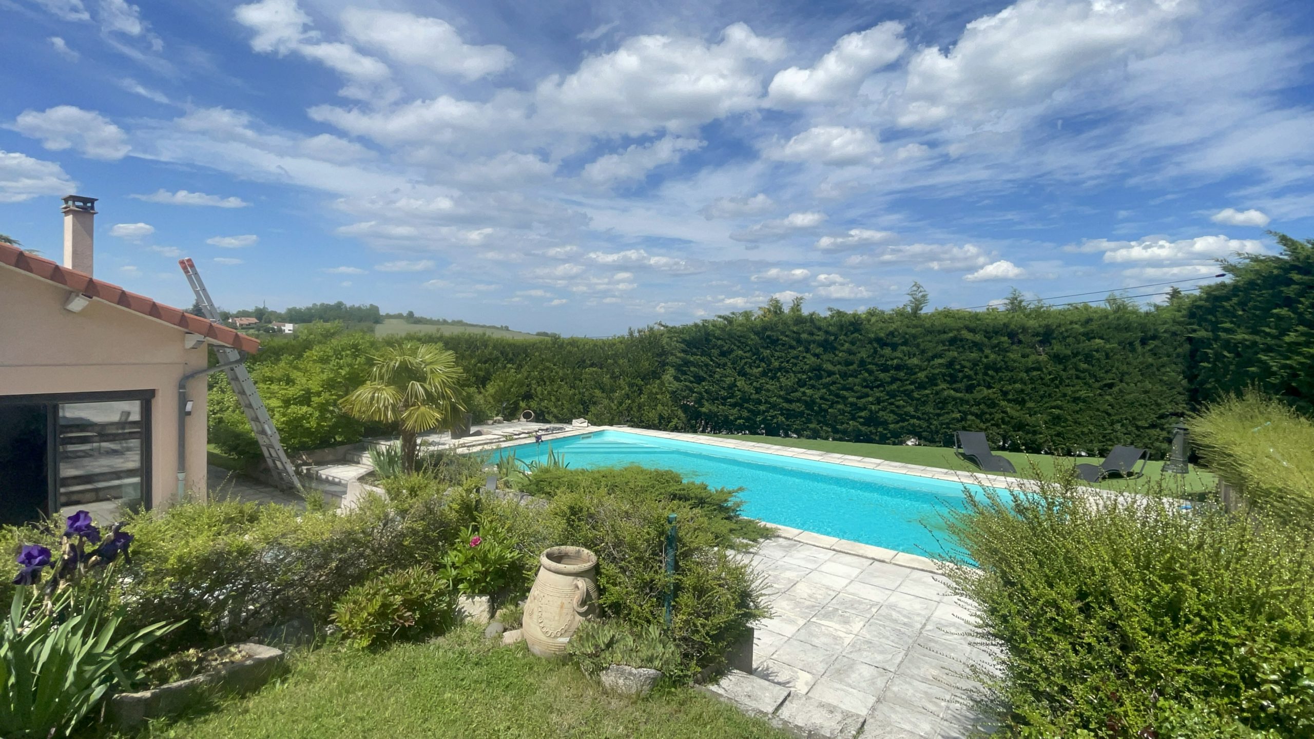 Maison idéalement situé avec très grand garage (plus de 100m²), piscine, terrasses, jardin et allée avec portail motorisé.