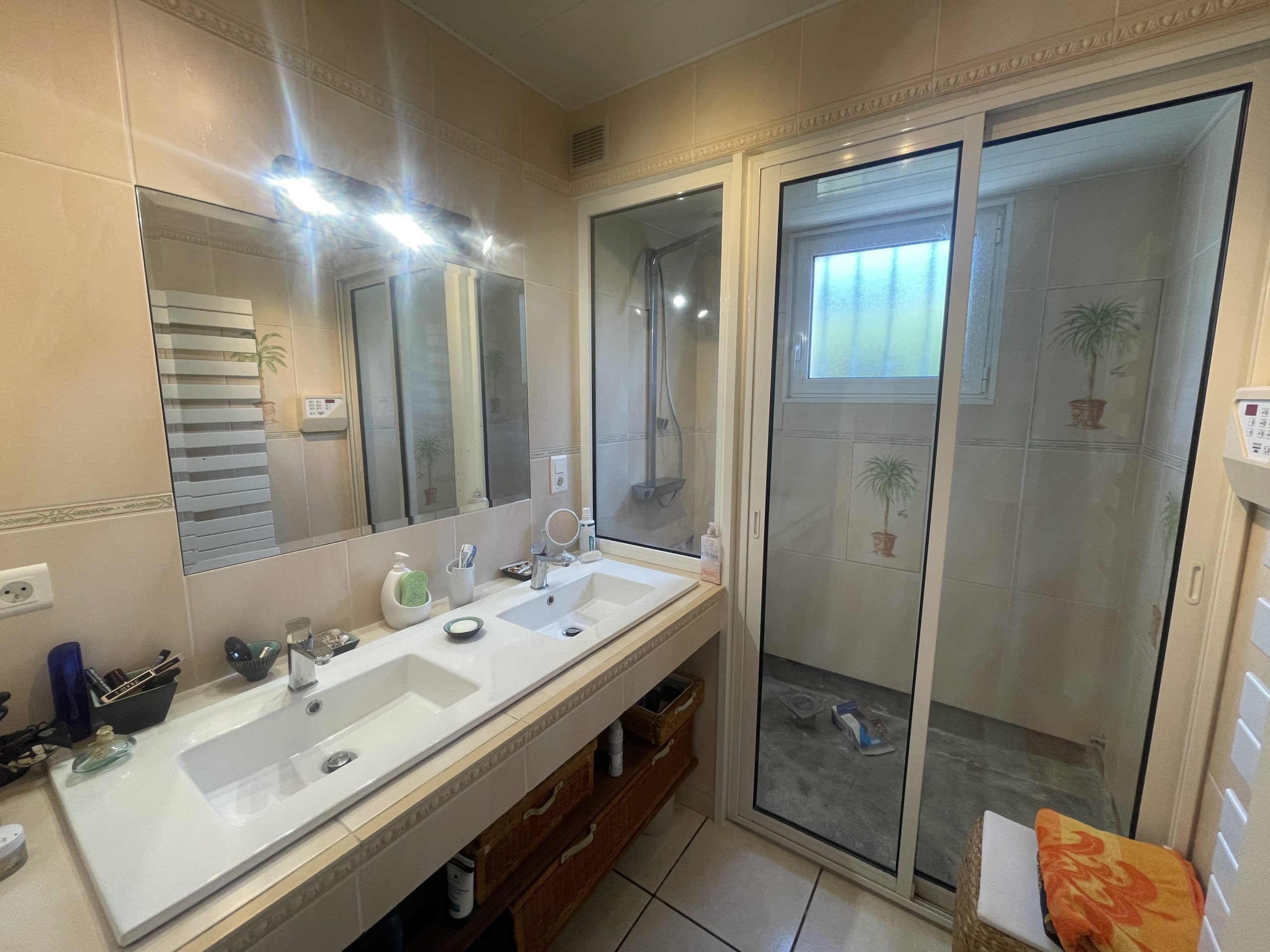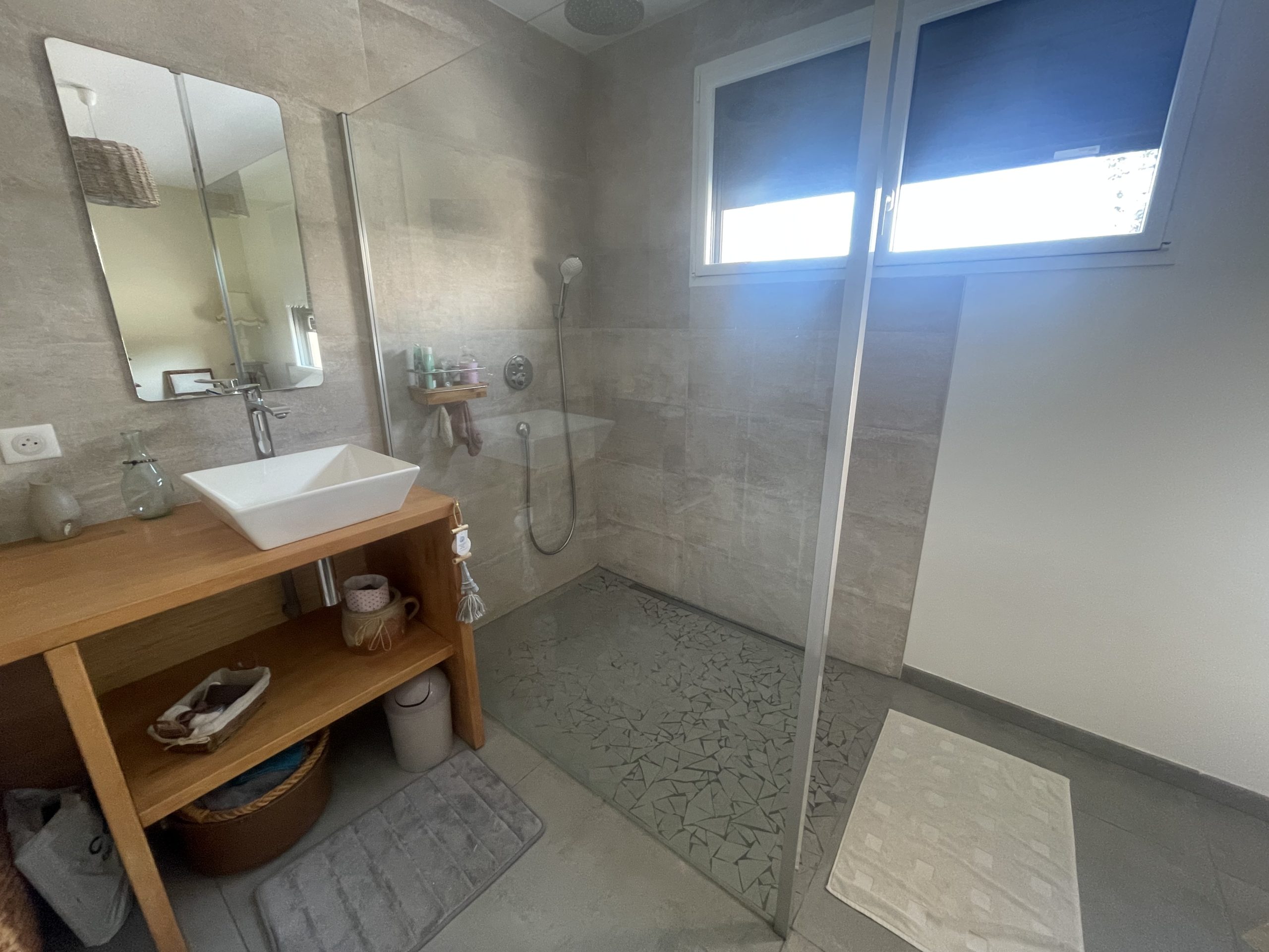 – Au premier étage : 2 chambres avec placards, un WC avec point d’eau et une terrasse avec jacuzzi et vue.